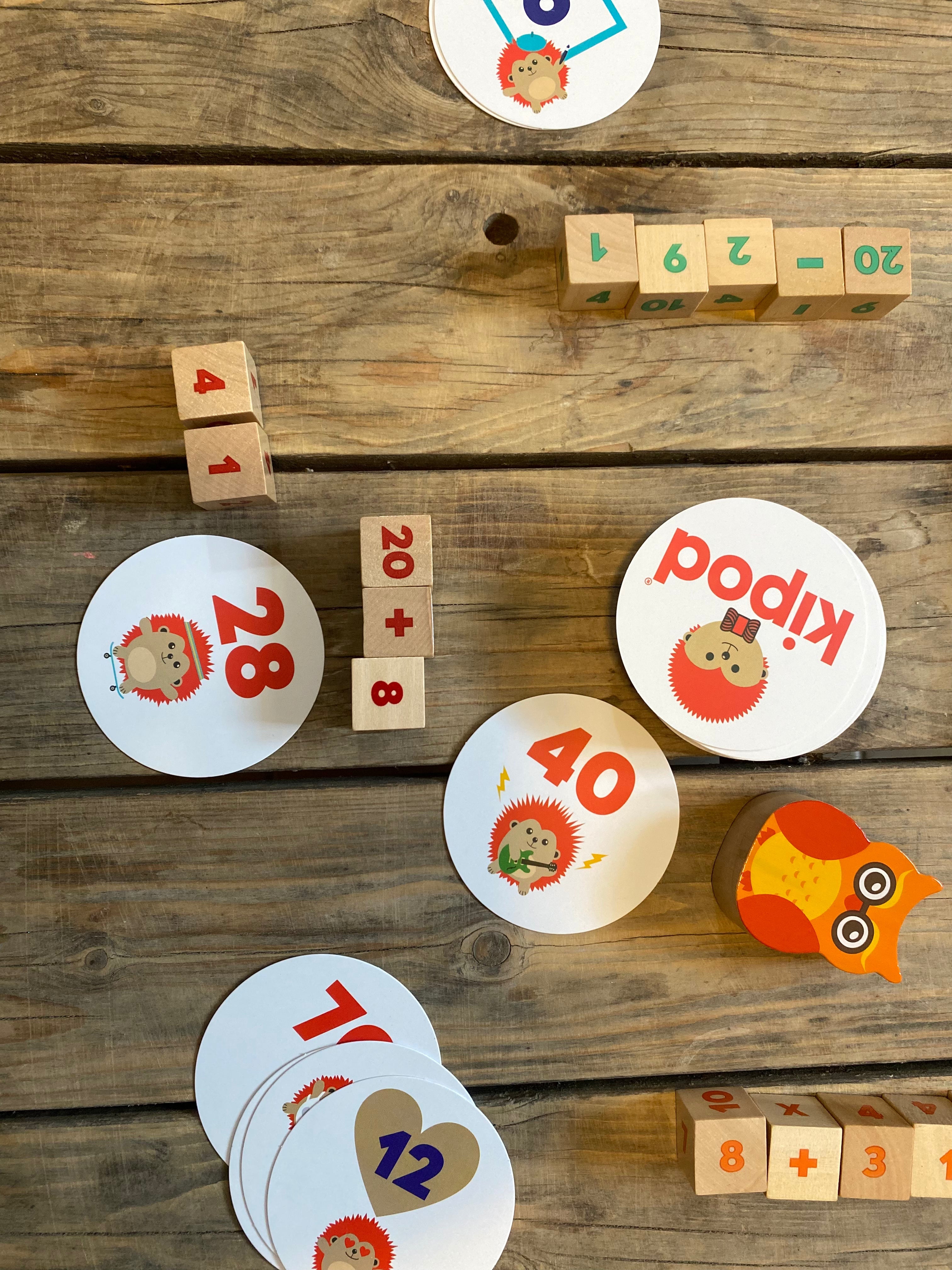 Each player receives colorful wooden cubes and creates math equations based on the cards – turning learning into an active, exciting and challenging experience.