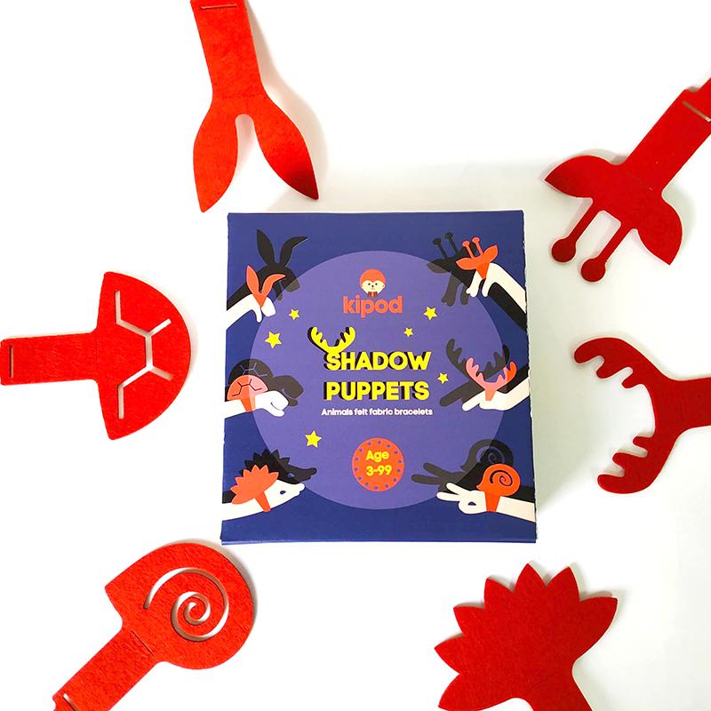 The set includes 6 high-quality felt bracelets that create animal shadows such as a turtle, rabbit, giraffe, hedgehog, deer, and snail.